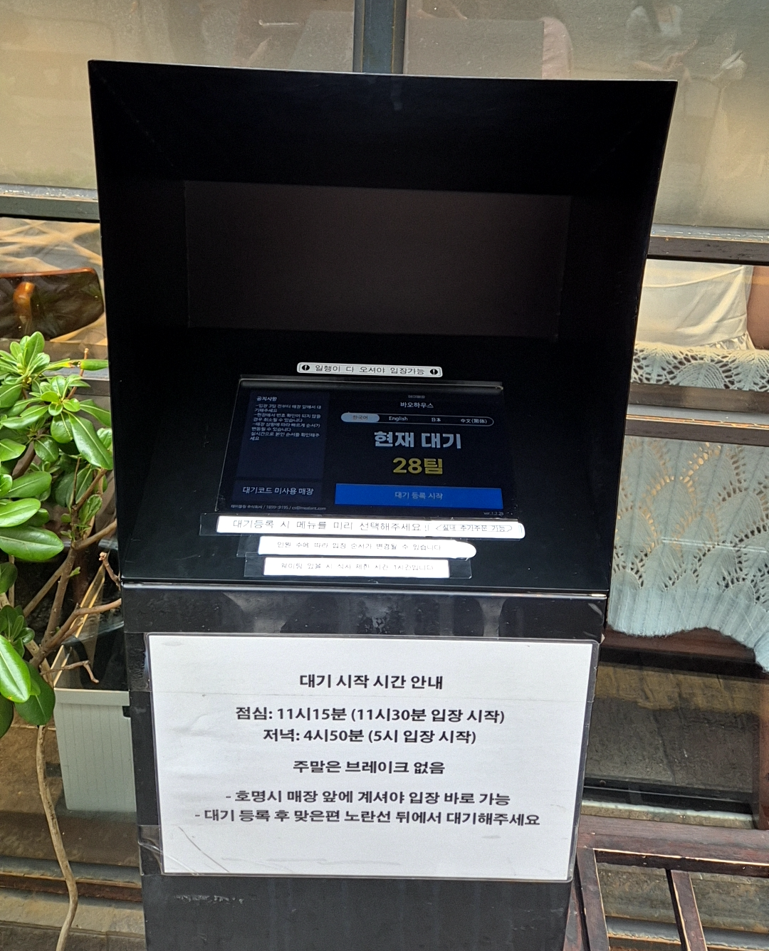 지난번에 왔을 땐 대기가 50팀 정도 있어서 허무하게 되돌아갔던 기억이.. 이번엔 미리 2시간 전에 테이블링 어플로 대기 걸어놓고 입장 20분 전에 식당에 왔다. 바오하우스 방문 예정이라면 테이블링 어플에서 미리 대기 걸어놓길 추천~