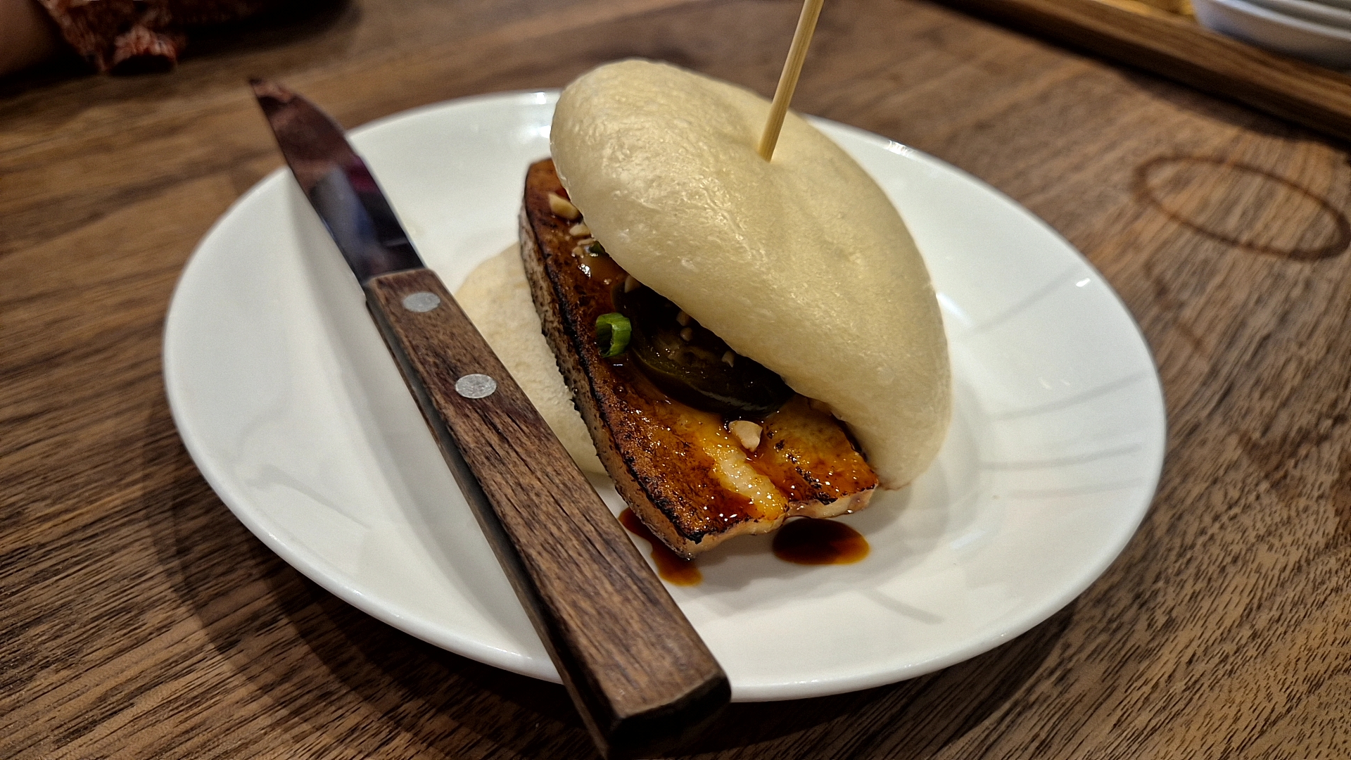 바오(包, Bao)는 중국어로 '싸다', '포장하다'라는 뜻의 단어에서 유래했으며 음식에서 '바오'는 주로 속재료를 밀가루 반죽으로 감싸 쪄낸 음식을 의미한다고 한다. 바오하우스의 '클래식바오'는 찐 빵 형태의 부드러운 번(bun)에 간장소스를 얹은 두툼한 삼겹살을 넣은 샌드위치다. 빵과 삼겹살의 조합은 도대체 무슨 맛일까 엄청 궁금했는데 짭조름한 삼겹살과 빵의 조화가 나쁘지 않았다.